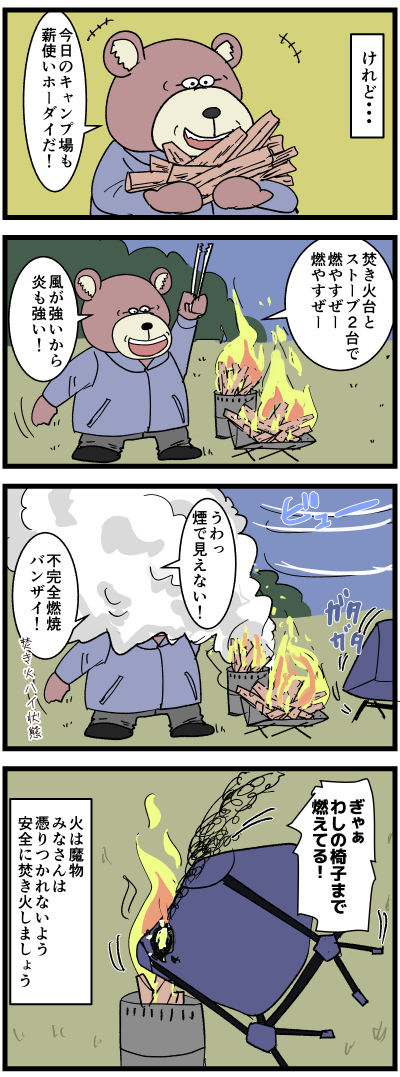 あの強風の中で焚き火するなんて何かに取り憑かれている以外の何者でもないわし夫でした。