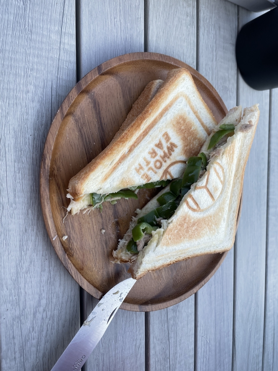 今日の朝ご飯は、相葉マナブで見たピーマンのサンドイッチをホットサンドメーカーで。