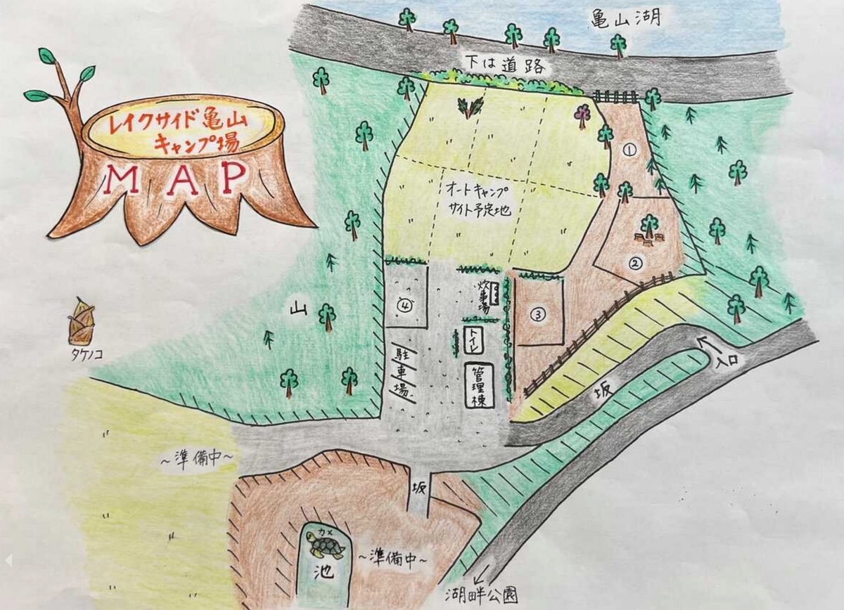 夜は亀山湖の対岸の灯りがキレイだったし、サイト数も少ないせいかとても静かで穏やかな時間が過ごせました。(夜中に誰かトイレに入った時電気を消さず洗面台に虫が大量に張り付いていたのにはドン引きした)