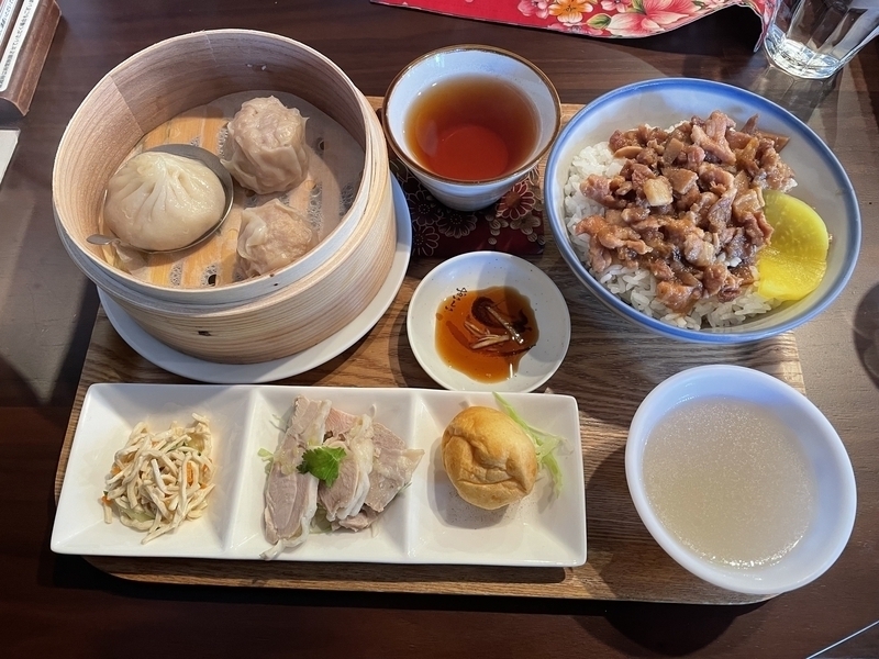 ちょっと並んだけどその分期待が膨らむ。お店は客家柄が所々見られて台湾だぁ。台湾満喫セットを2人して注文。台湾だぁ。でも少し洗練された味だね。(屋台のようなワイルドご飯多めな人の言うセリフ)魯肉飯や小籠包食べて幸先の良い台湾巡りがスタート。