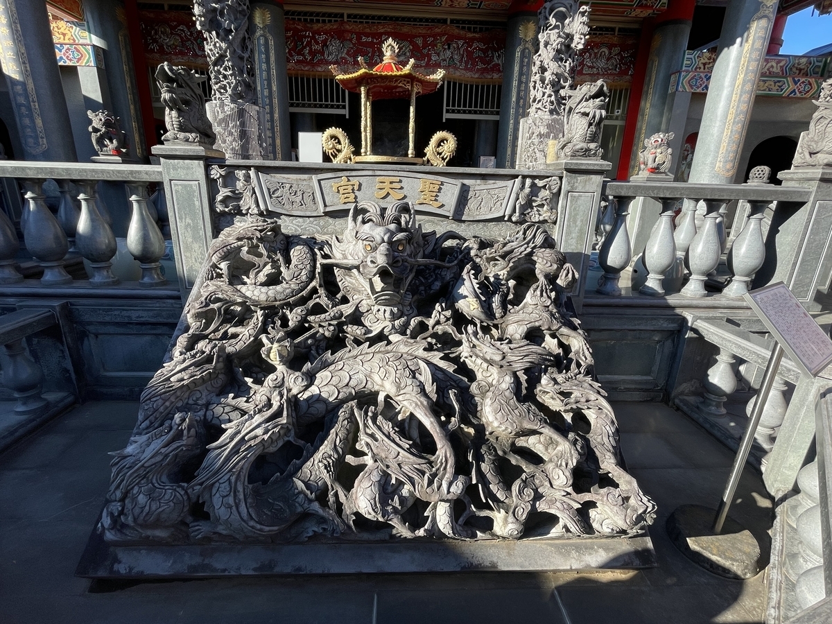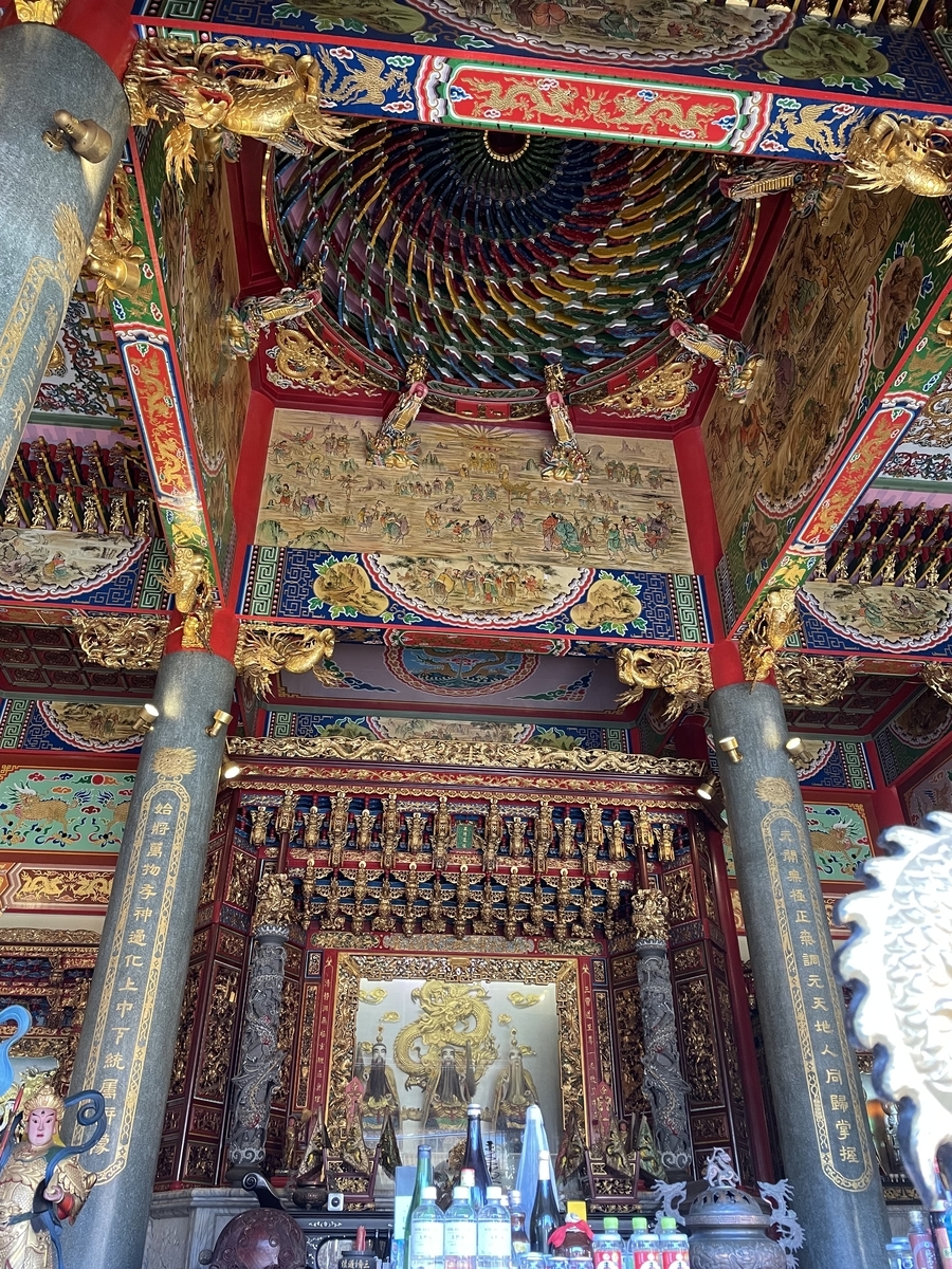 何も無いところに突然台湾の道教の廟が・・・何でもお告げでこの地に聖天宮を建立するように言われたそうだ。個人が台湾から宮大工を呼び寄せ15年の月日をかけて作られたこの聖天宮、すごい迫力です。