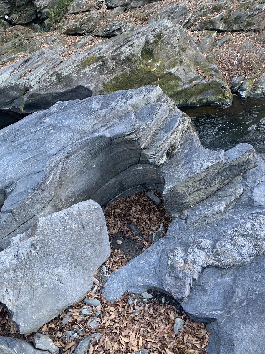 甌穴を見に行ってみます。秩父の長瀞にある岩畳も有名ですがここもなかなか小規模で人がいなくて良いですね。甌穴は崩れちゃって残念な感じ。