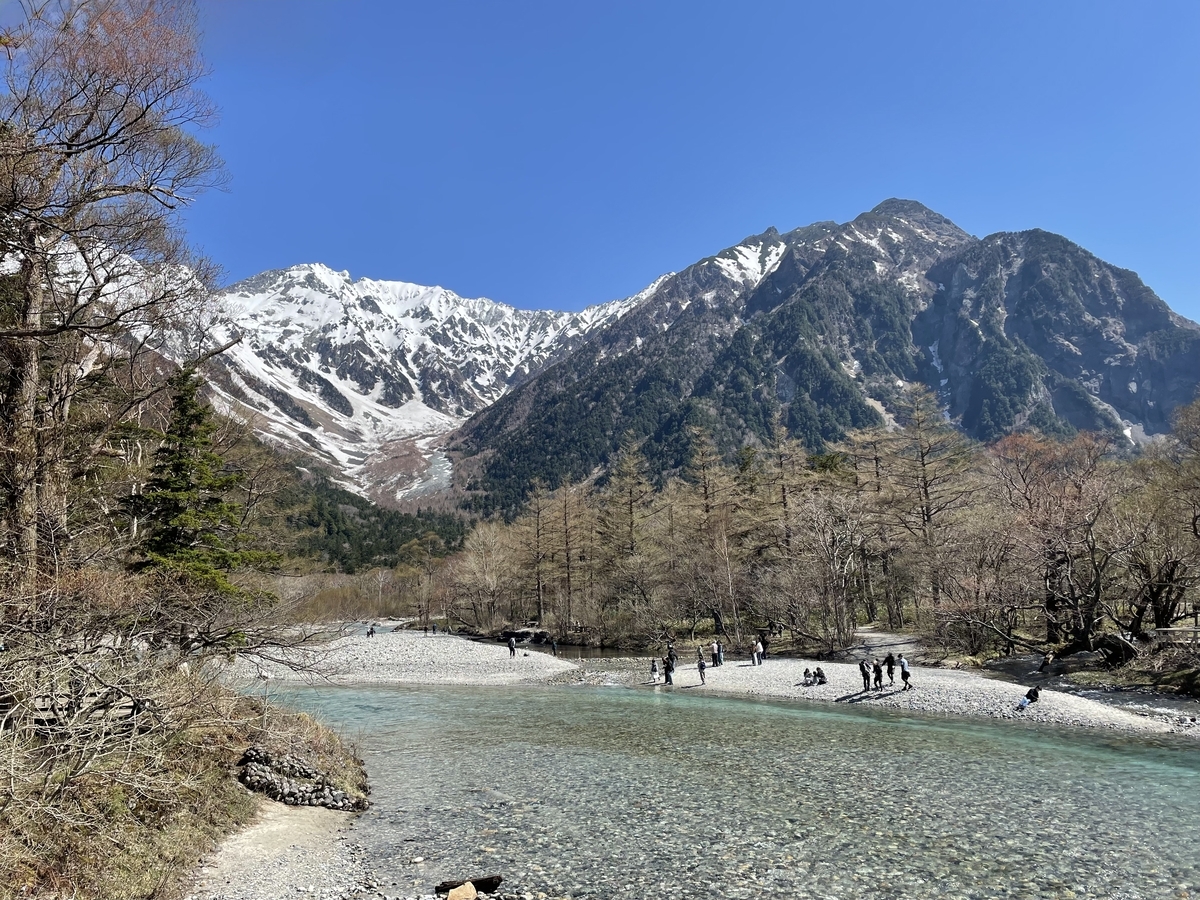 河童橋から見る穂高連峰。昔読んだ登山の本の世界がここにはあります。本当は徳沢とか気になりますがワシ子の体力ではここが限界でした。(ワシ子は新田次郎が大好き)