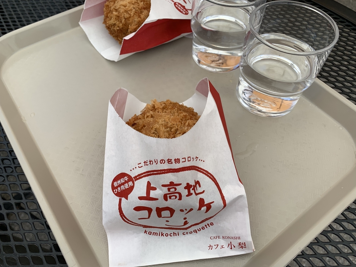 疲れたので一息。アイスコーヒーが美味しい。ついでにコロッケも食べちゃいました。いっぱい歩いたのでボリューミーなコロッケもペロリです。