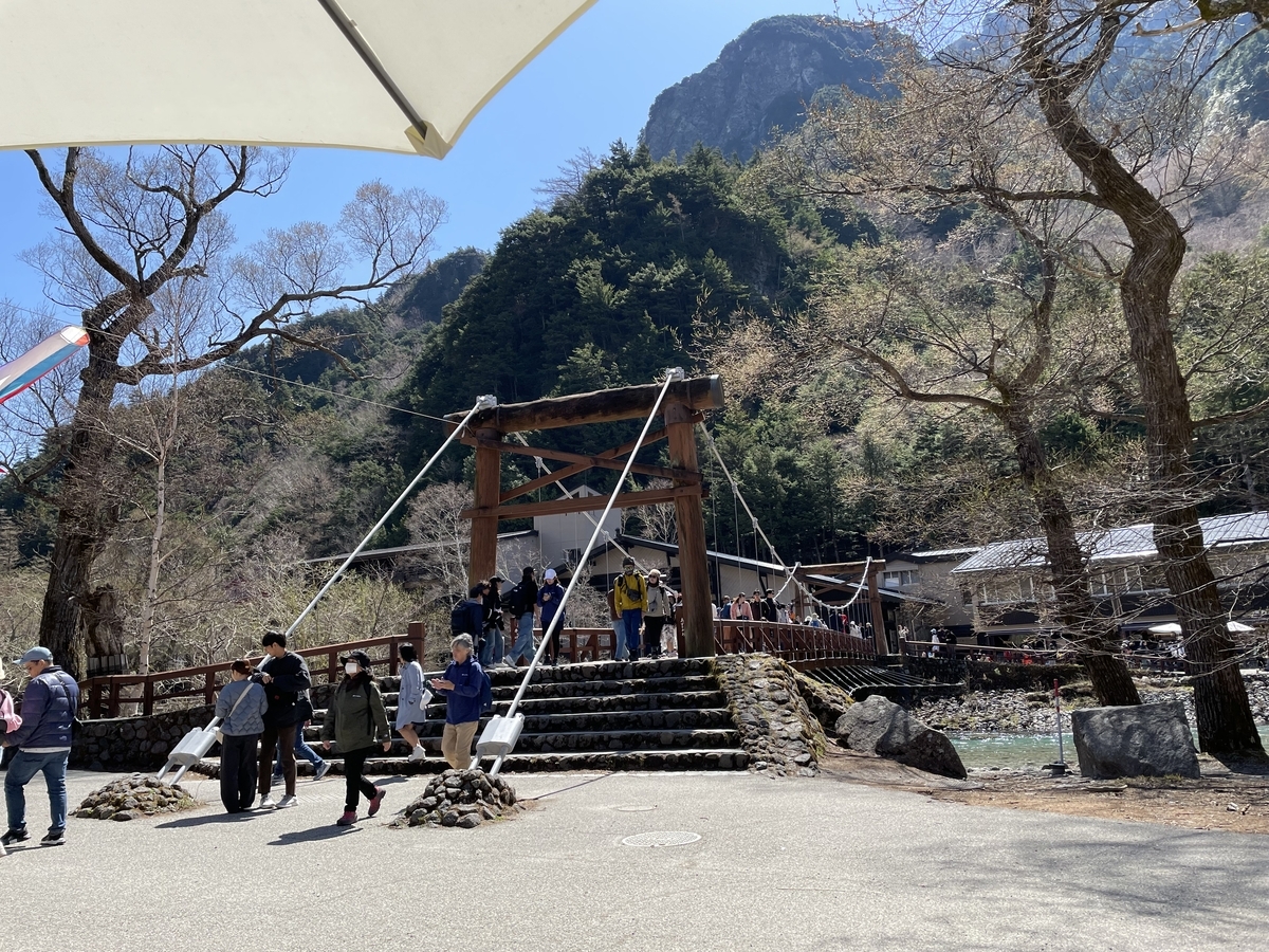 あーもう足が疲れて痛い。けど沢渡駐車場には足湯がある!と言うことで足湯に浸かって疲れを癒すことにします。(わし夫は壊れた靴から履き替えました)足湯大好き。お湯が出る方が熱い💦